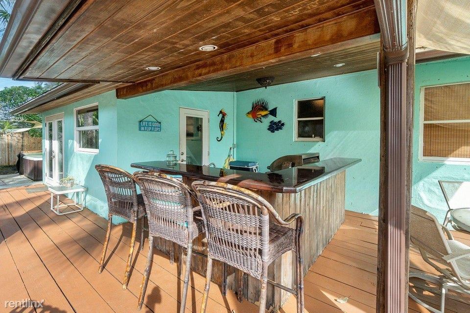 Seasonal, summer or annual! One street over from the intracoastal water way. Step inside this open floor plan great for entertaining, Wide open Kitchen area decorated and clean. Master bedroom has a chic comfortable feel of the tropics with bamboo wood floors. Guest room a fun tropical feel with Caribbean blue water walls and dark bamboo wood floors. Guest room or Bright White Den with Twin beds cozy! The master bath has been inspired by the Zen feeling of Costa Rican rain forests, guest bath more traditional old Florida style. Dining room is perfect time to settle down at the end of the day to a nice dinner. Courtesy of Hampton Real Estate Group. Private Back yard is lush with tropical trees with a great nice size deck to lounge out, Resin Bar top and Grill. Hop in the Hot Tub!