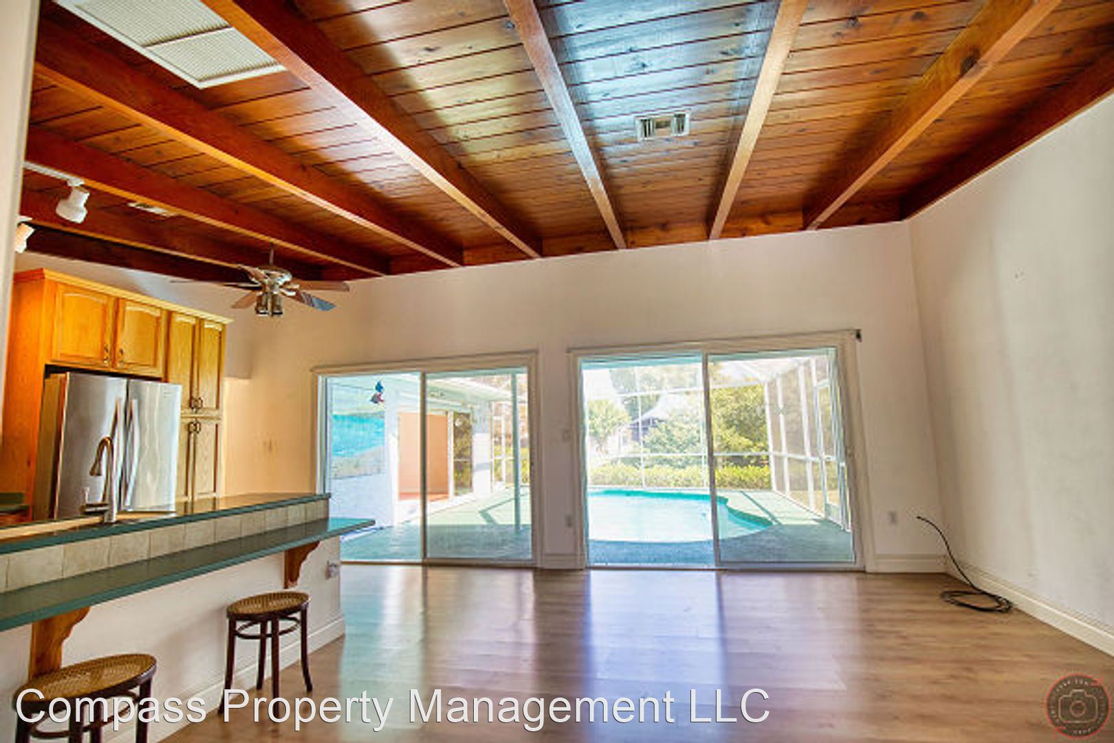 Annual Unfurnished Pool Home on Shakett Creek and Conveniently located to the Legacy Trail! - Annual Unfurnished Pool Home – Waterfront located on a Nokomis Cul-de-sac, with Dock & Canal exposure for venturing off in a kayak, docking your boat, or fishing. This comfortable Split floor plan provides two bedrooms, two Bathrooms, an Office, two car garage, and just over 1,600 square feet of living space. The exposed wood & beam ceilings add a warmth throughout with a floor plan that can accommodate an extra living area or dining area for entertaining. The extended living room opens to the kitchen and pool area for additional Florida living. The master bedroom is spacious with large sliders opening to the pool, a walk-in closet for his & her entry, and adjoining master bath with walk-in shower. As a split plan the guest bedroom is nicely situated to the guest bathroom that offers a shower & tub combination. The laundry closet is complete with cabinetry, a utility sink and a full-sized washer and dryer for your convenience.