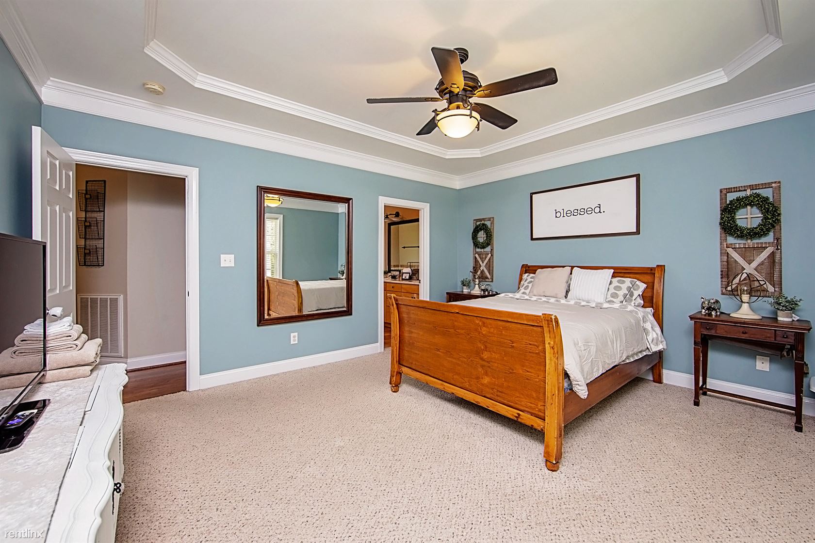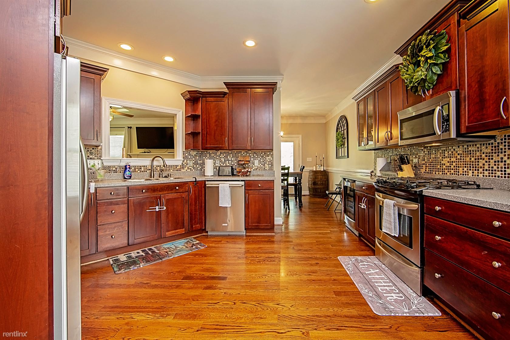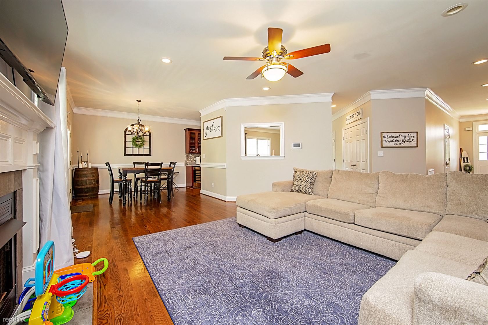 The property is tucked away onto a quiet cul-de-sac in a gated community near Wooded Lake and King's Grant Golf and Country Club. This home features 3 bedrooms, each with a closet and 2 bathrooms. The master bathroom includes a garden tub and a separate shower. Hardwood floors and stainless steel appliances are only a few of the lovely features. This home is pet friendly and has a huge, privacy-fenced backyard.